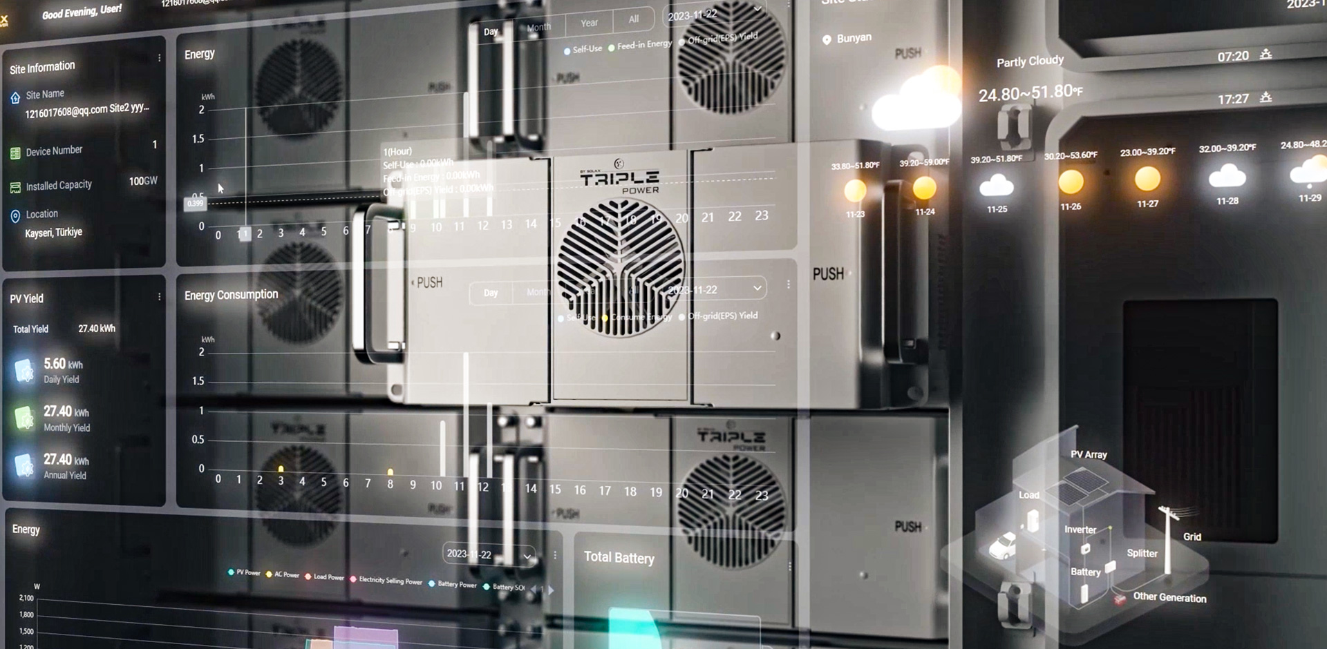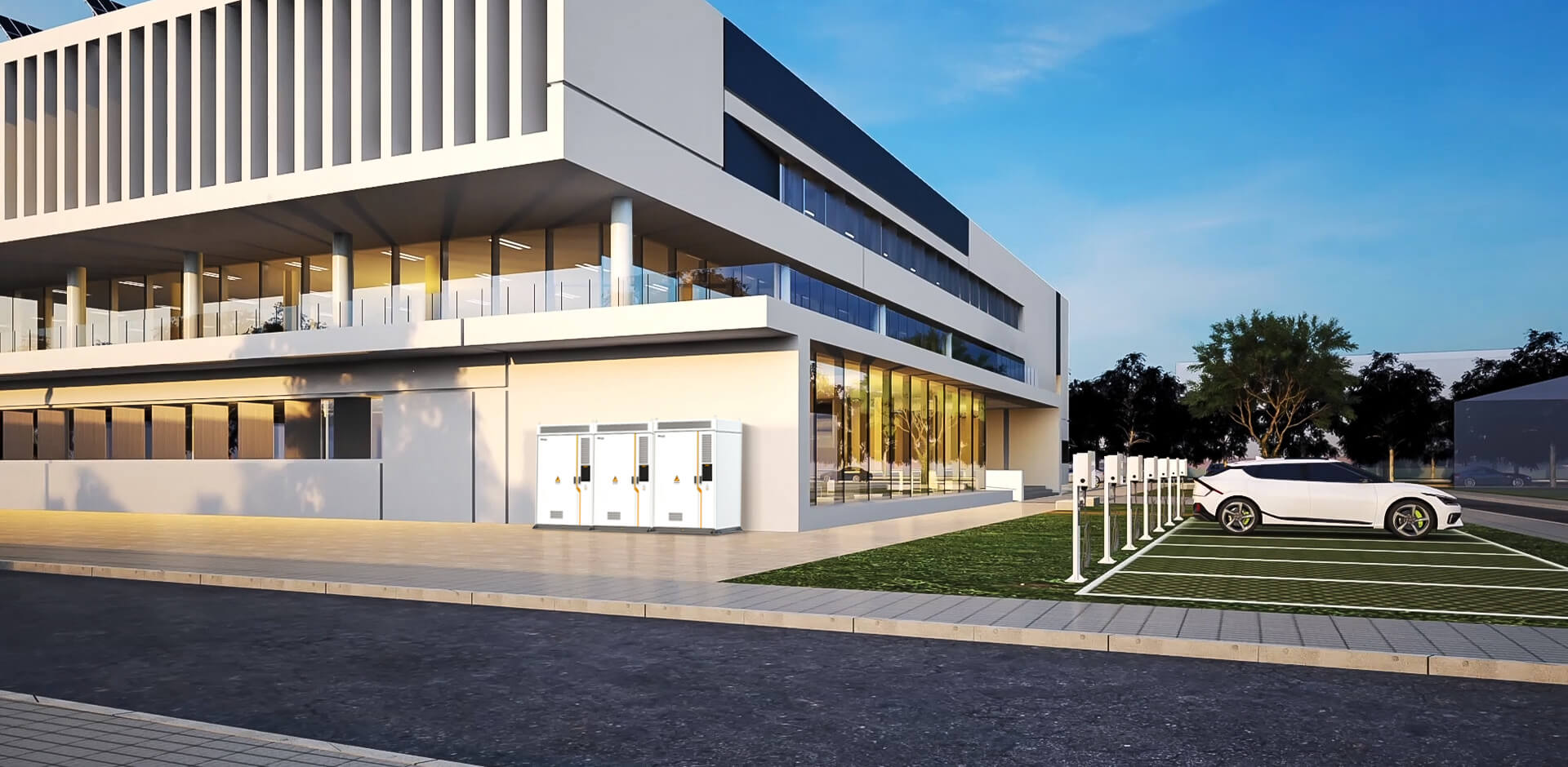 Chuẩn bị cho tương lai với giải pháp năng lượng “tất cả trong một” kết hợp năng lượng mặt trời, lưu trữ năng lượng và hạ tầng sạc EV. Cung cấp năng lượng cho đội xe điện bằng 100% năng lượng xanh đồng thời giảm chi phí điện năng.